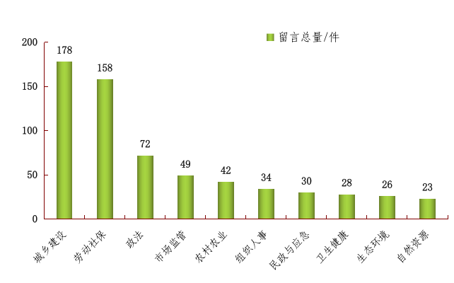2025年1月份留言内容分布前10位情况